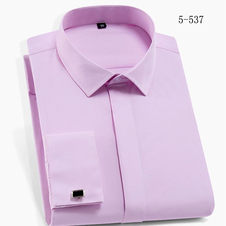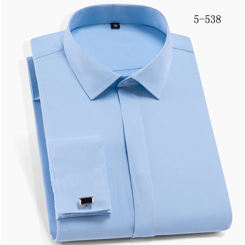 France boutons de manchette inclus col carré recouvert bouton doux solide plaine business party hommes chemises habillées sans poche avant