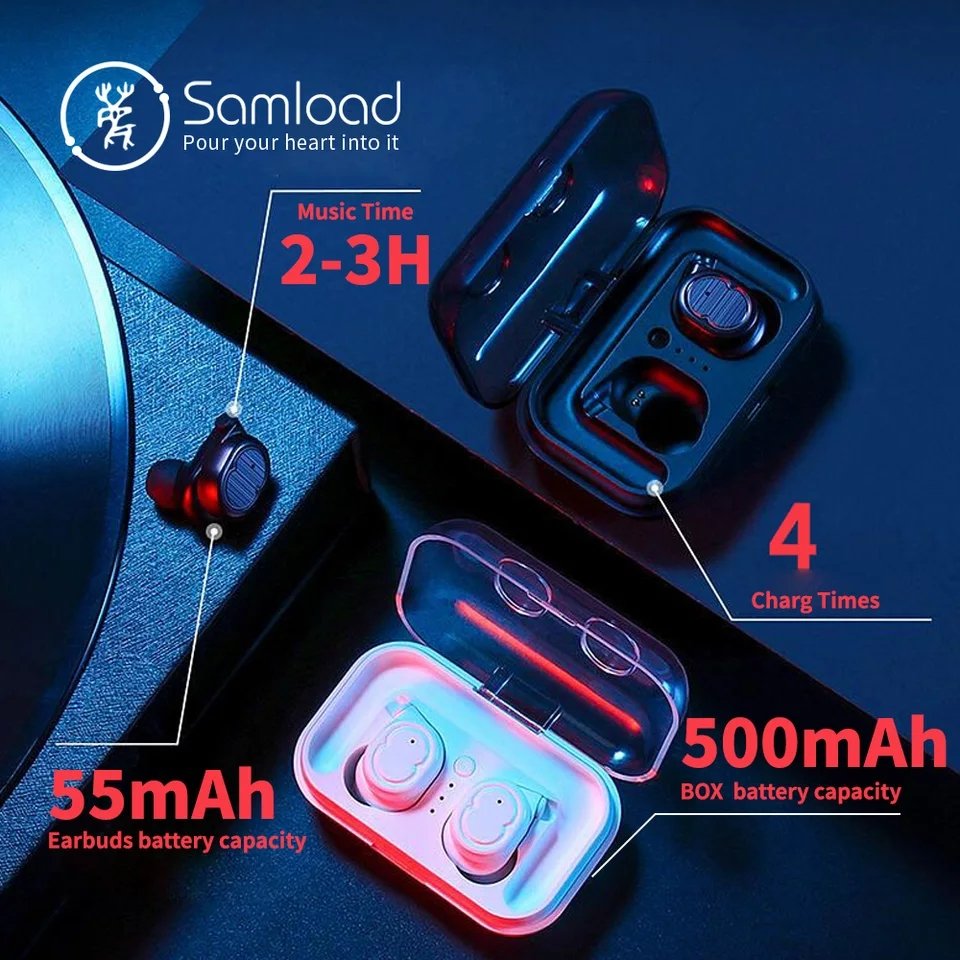 - Battery capacity(charging case): 500mAh Charge 4-5 times