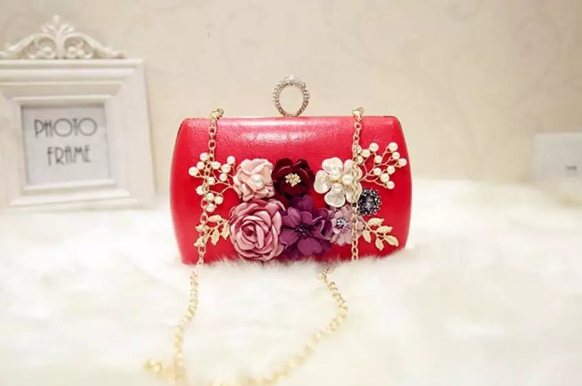 Méloke 2019 haute qualité fleurs faites à la main sacs de soirée marque dîner pochette sac à main avec chaîne fleur banquet sacs MN25