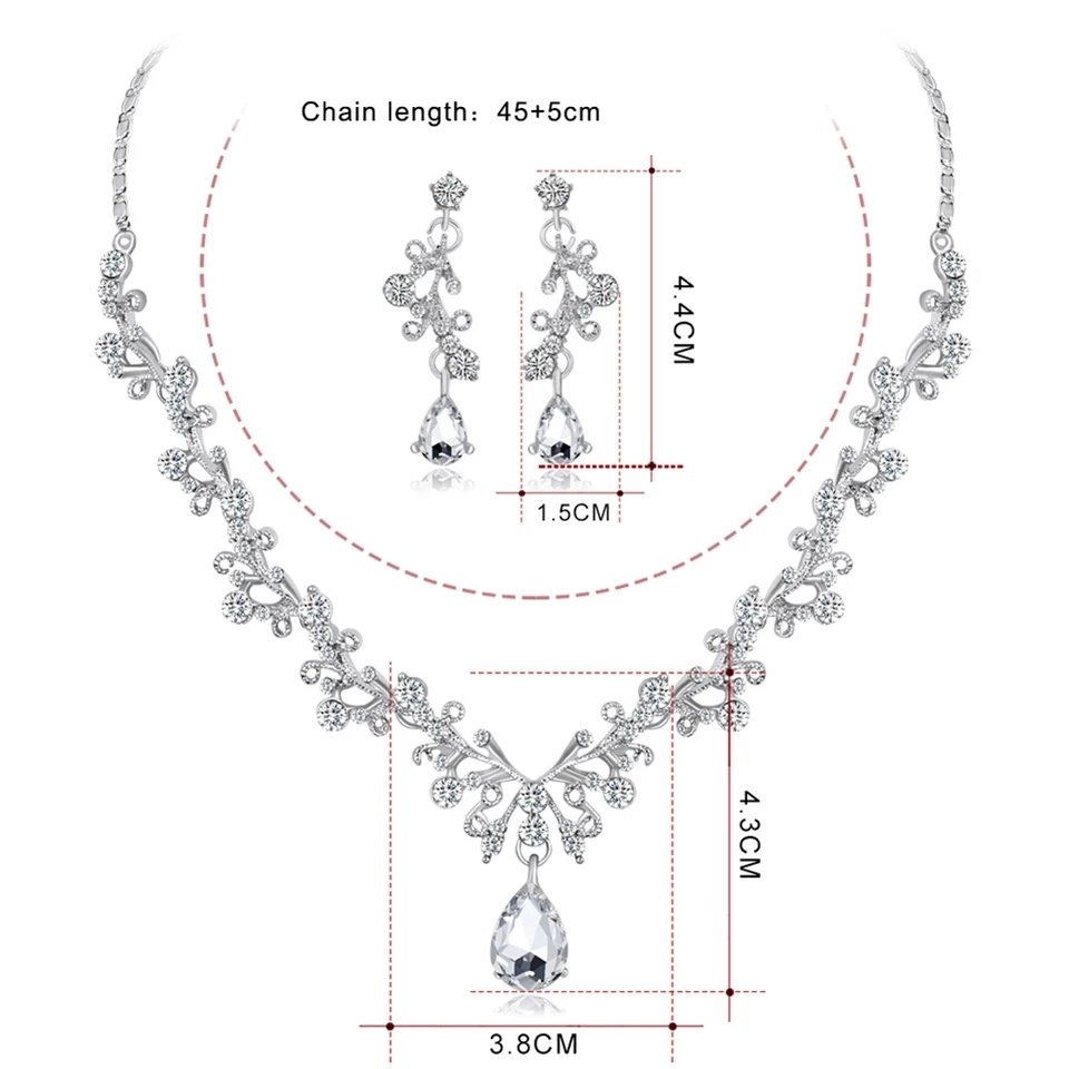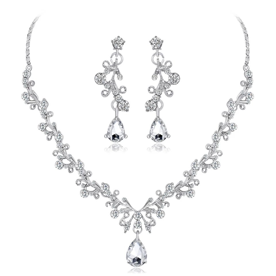 Femmes mode strass larme pendentif collier Dangle boucles d'oreilles bijoux ensemble bijoux cristal bijoux bijoux ensemble perles