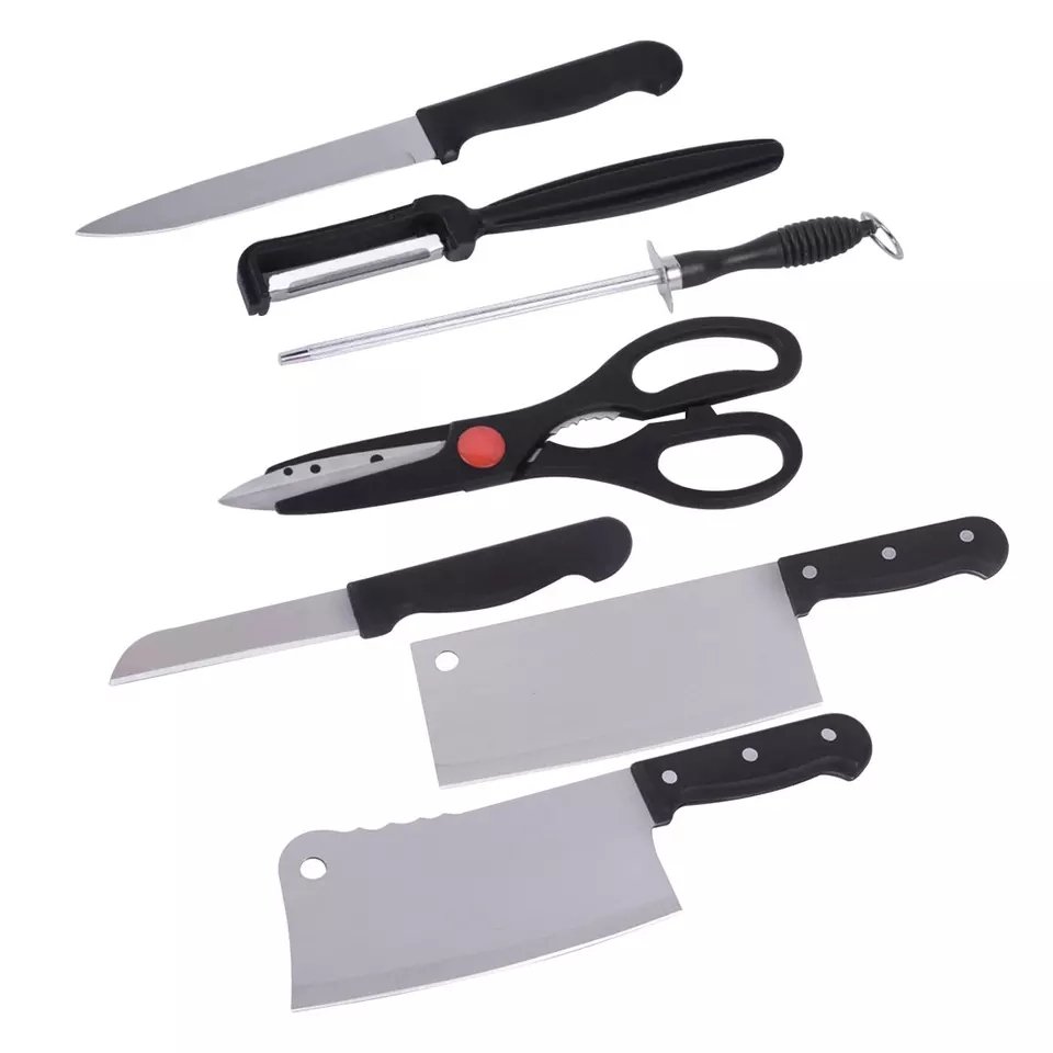Meilleure Vente Belle 8 pièces Ensemble de Couteaux de Cuisine En Acier Inoxydable Noir Couteaux de Chef Huit Pièces de Fruits De Viande De Légumes Poignée Antidérapante