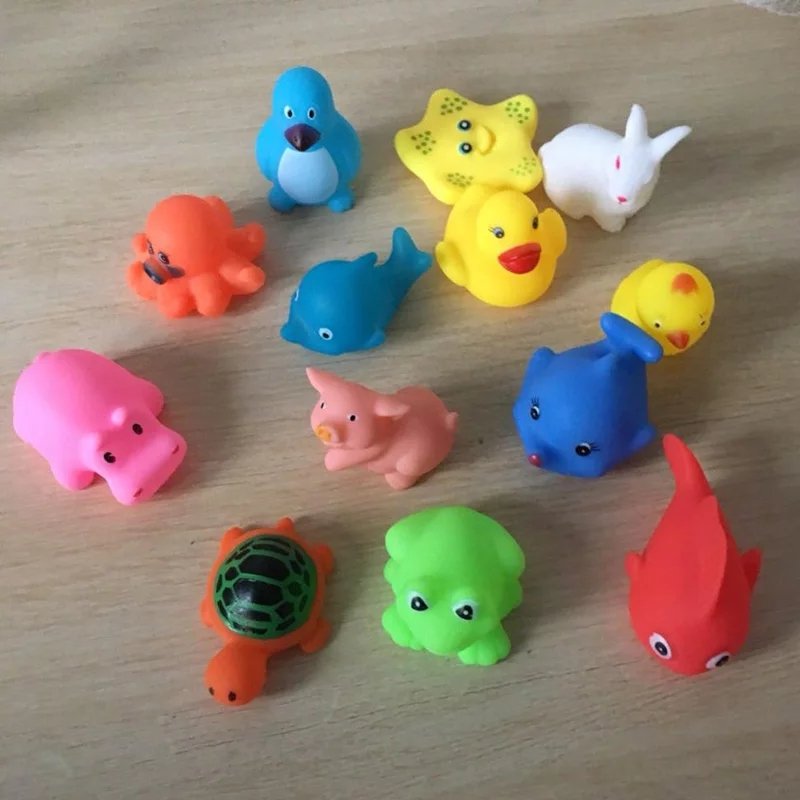 13 pièces animaux mixtes natation eau jouets coloré doux flottant en caoutchouc canard presser son grinçant jouet de bain pour bébé jouets de bain