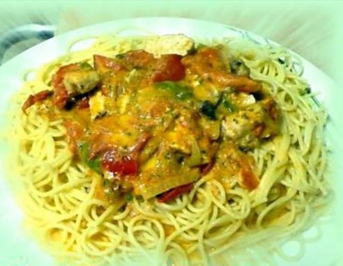 Note : l'image est une illustration. Qui sera différente en présentation et composition. Le principal reste tel que renseigné, émincé de poulet aux spaghettis.