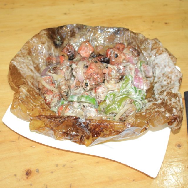 Poulet mayo entier grillé au feu de bois. Avec accompagnement