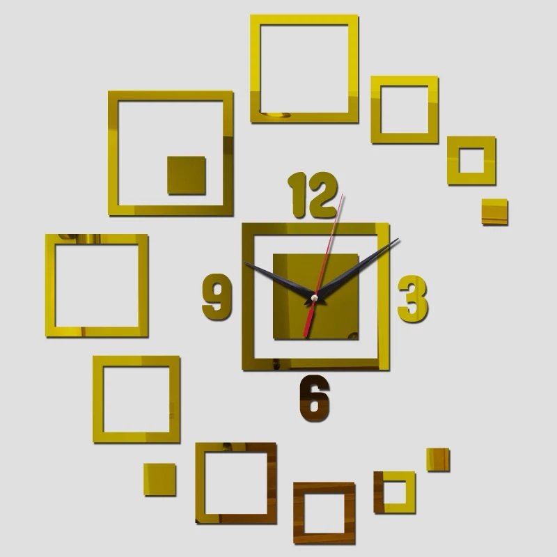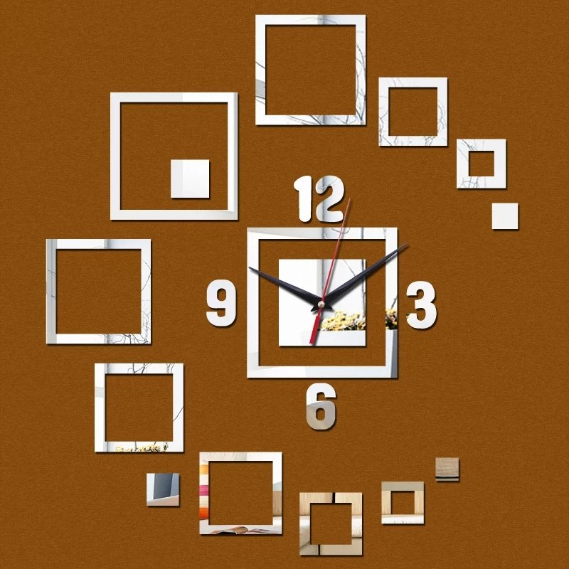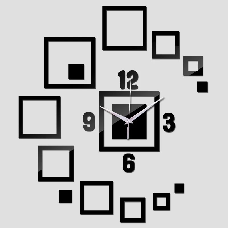 Offre spéciale décor surface acrylique Quartz horloge murale 14 carrés moderne ménage bricolage miroir autocollants précipité