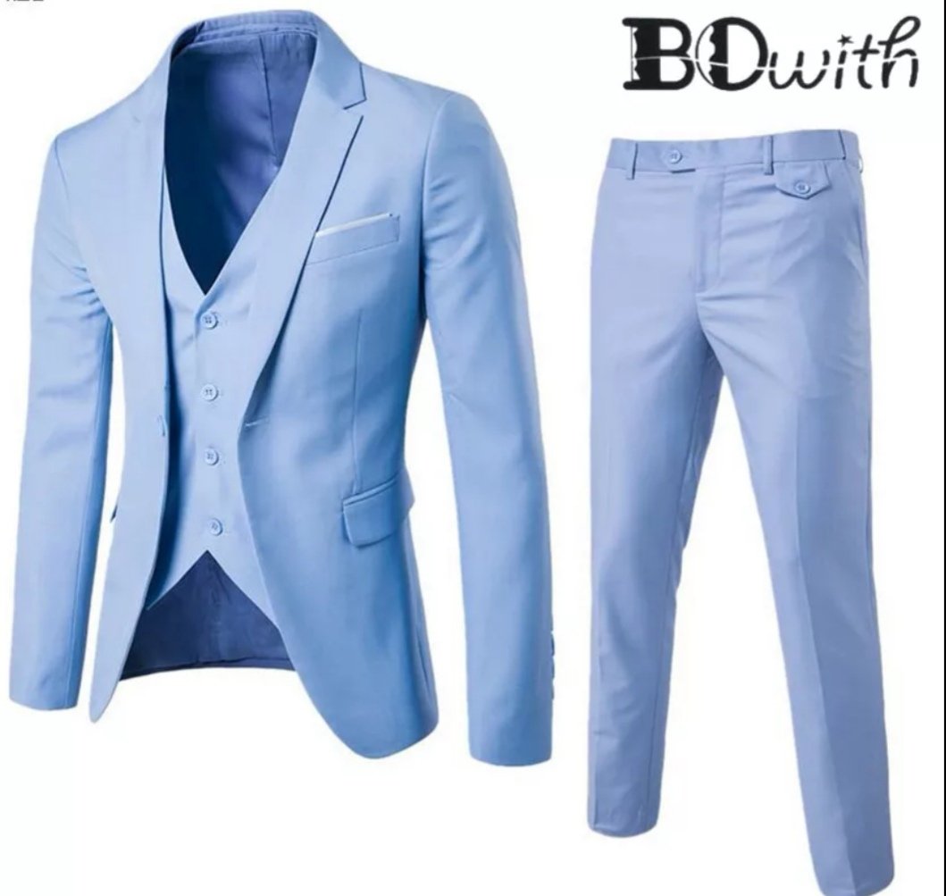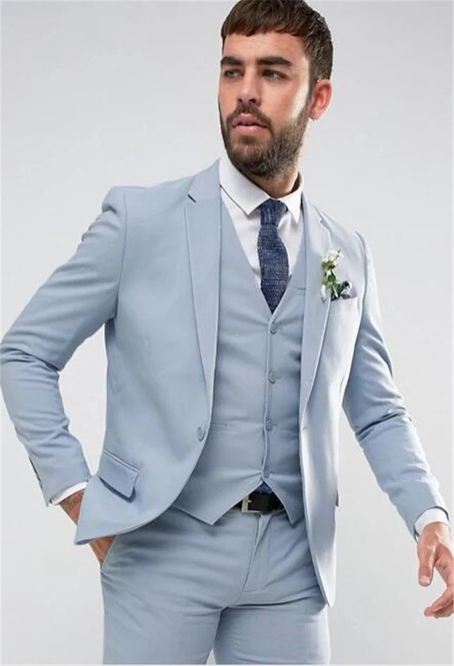 Bleu clair mariage hommes costume col cranté Slim Fit 3 pièces veste +